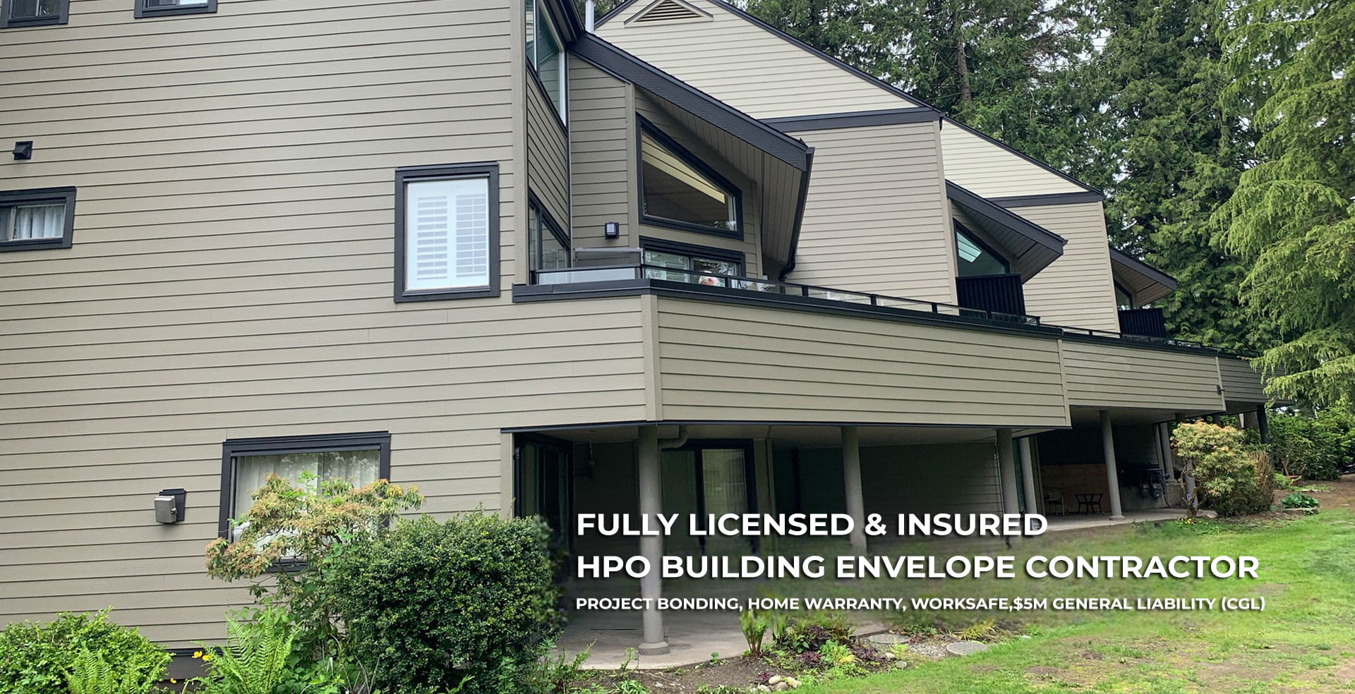 We are a fully licensed and insured HPO building envelope renovation contractor. We carry $10 million Commercial General Liabiliy (CGL) and WorkSafe coverage. We are an approved Home Warranty provider.