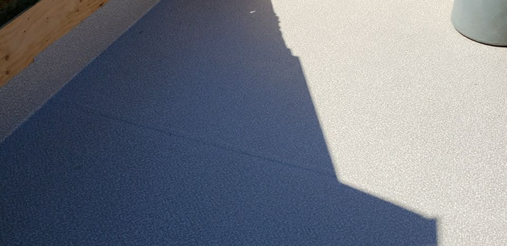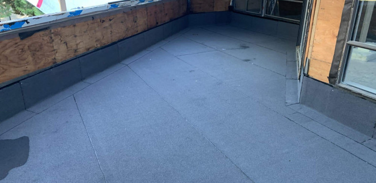 - New 2ply SBS membrane over 1st floor concrete slab with paving stone walking surface