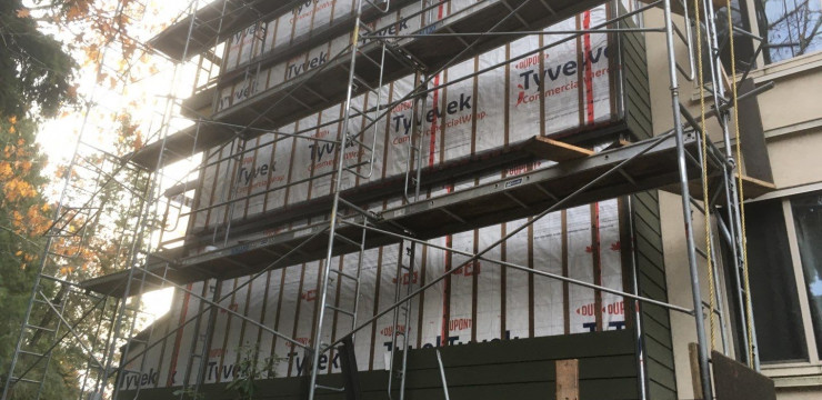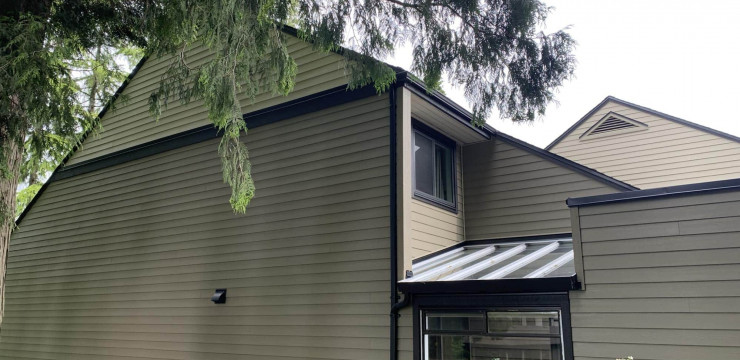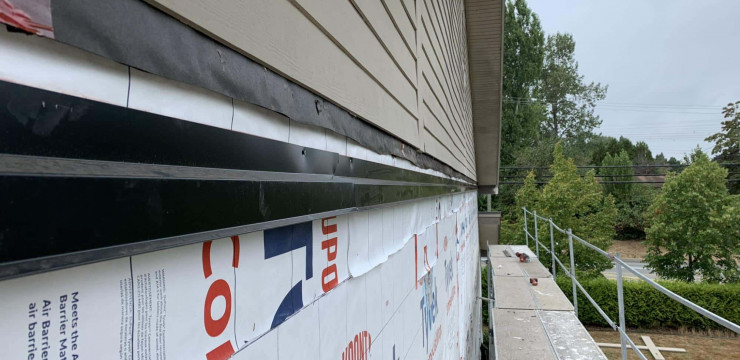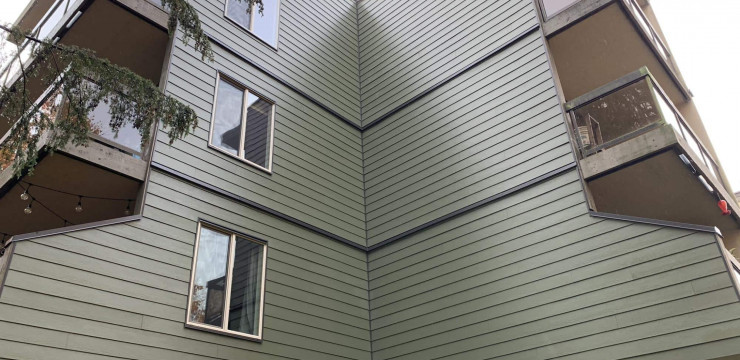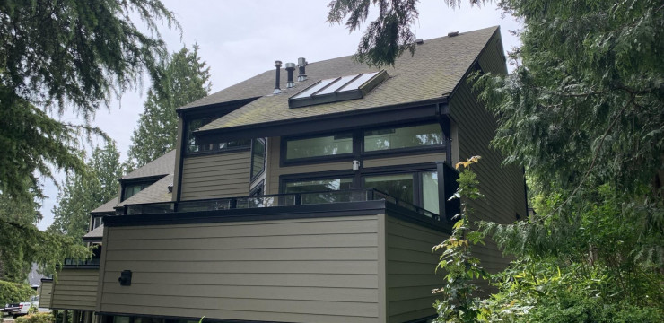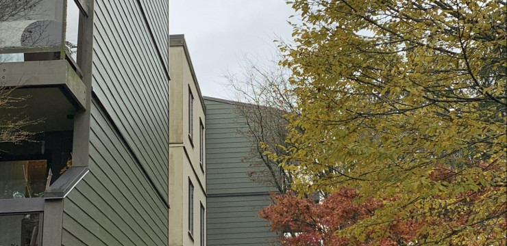 Kallio worked with Strata Council on a comprehensive siding replacement of vertical cedar siding and aluminum windows. Existing siding, and poor envelope details, were causing moisture ingress and damaging framing.