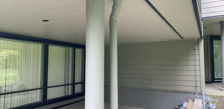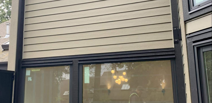 - Replacement of siding with rainscreened fibre cement Hardie siding
