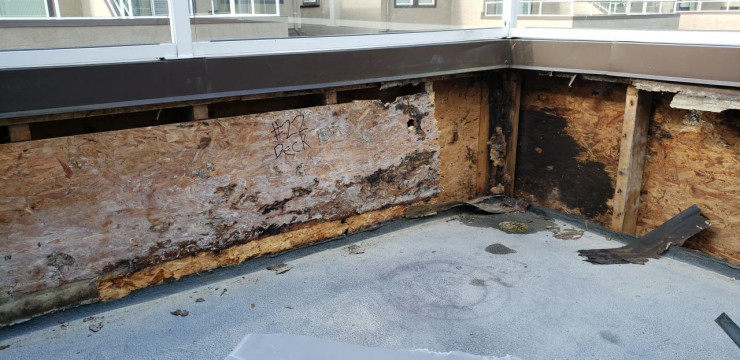 Kallio worked with building envelope engineers on the renewal of 87 balconies. Existing liquid membranes were approaching the end of their service life. Moisture ingress from top-mounted railing fasteners and aged liquid membrane was causing balcony framing to rot.